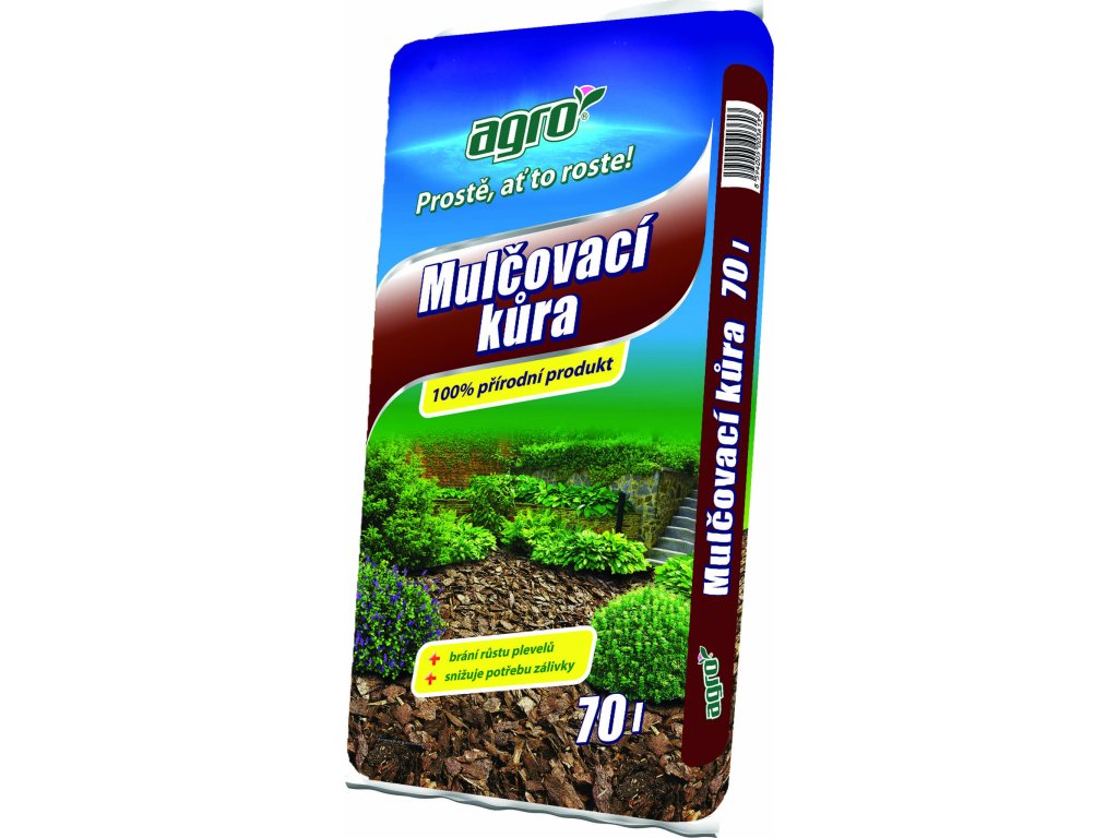 AGRO Mulčovací kůra je 100% přírodní materiál určený především k mulčování záhonů, kde zabraňuje růstu plevelů a odpařování vláhy z půdy. Dále slouží výborně k vysypávání cest, oddělování záhonů, pokrytí půdy okolo okrasných a ovocných stromů, na úpravu dětských hřišť a koutků.
