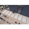 Nejprve určEte trasu cesty a podle velikosti šlapáků se rozhodněte, zda je budete klást vedle sebe v řadě, střídavě vpravo a vlevo, nebo ve dvou řadách rovnoběžně. Poté šlapáky postavte do vytyčené plochy a vyzkoušejte si jejich umístění a vzdálenost, abyste zjistili, zda vám vyhovuje délka kroku.