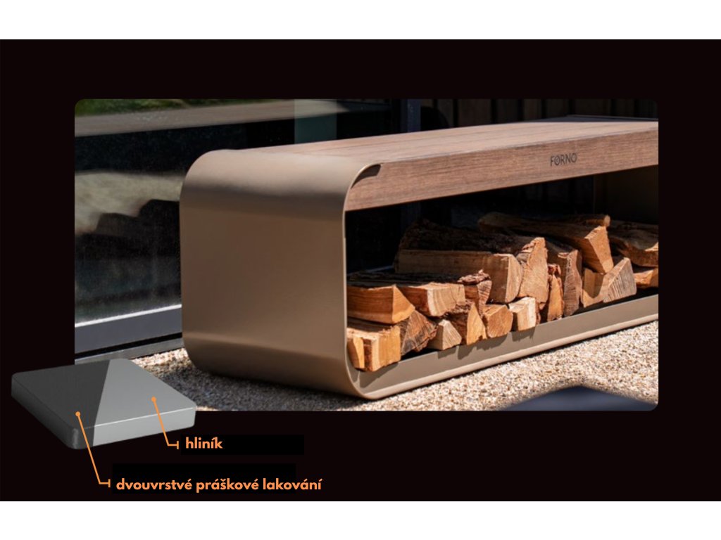 Dřevníky SERRA z hliníku jsou lehké, odolné a dostupné v několika barevných provedeních. Jednotlivé barevné varianty jsou laděny v teplých, přírodních odstínech, takže krásně splynou s vaší zahradou. Povrchová úprava dřevníku nejen podtrhuje jeho elegantní vzhled, ale zároveň chrání hliník před povětrnostními vlivy.
