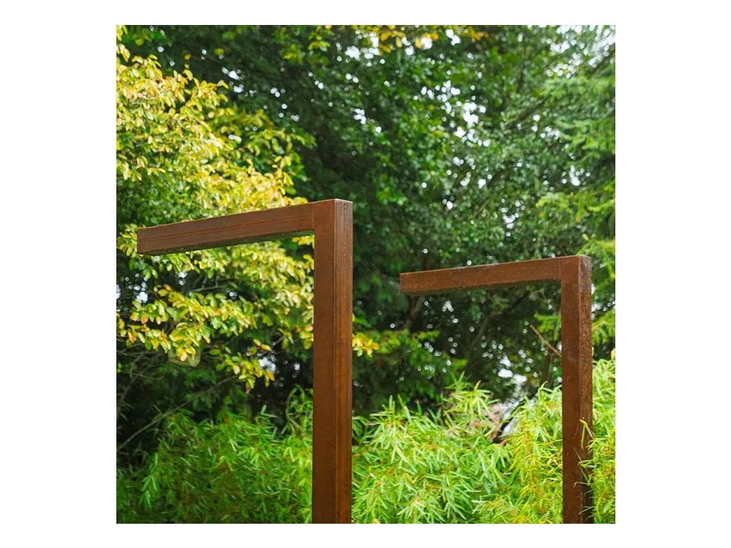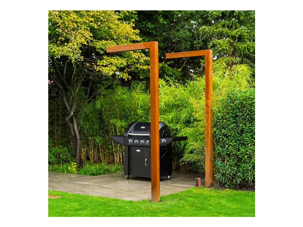 L-pergola COR je otevřená designová pergola z cortenové oceli, navržená jako čistý architektonický prvek bez zastřešení. Díky svému tvaru ve formě „L“ působí lehce, ale zároveň výrazně – skvěle se hodí k optickému vymezení prostoru, zvýraznění zahradního zákoutí nebo jako rám pro posezení, gril či průchod zahradou.