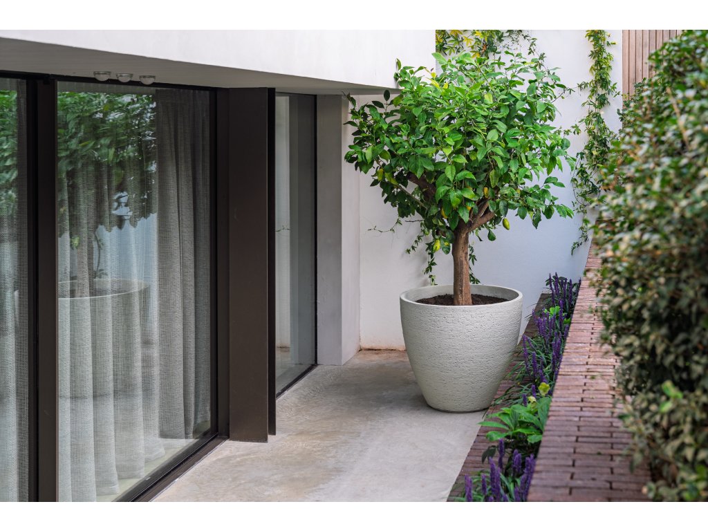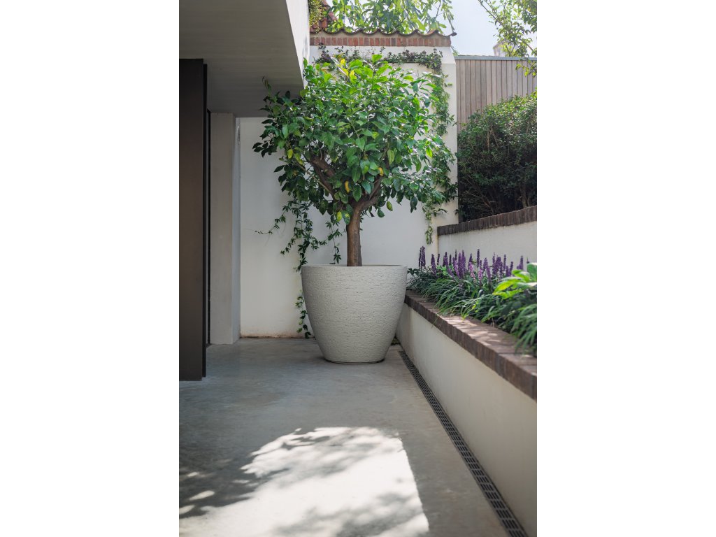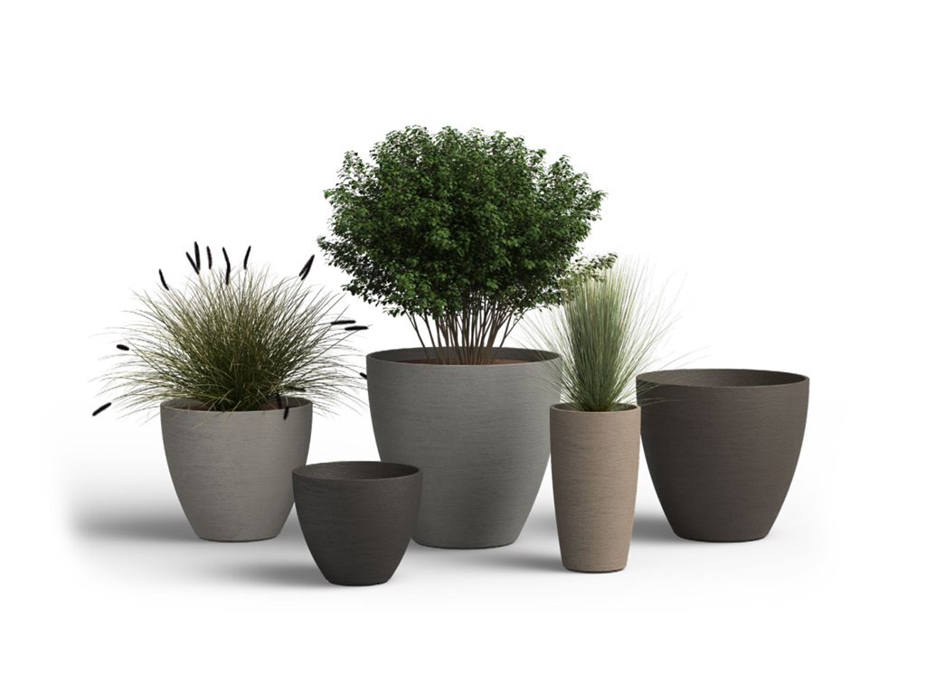 Květináč LIV zaujme na první pohled svým sebevědomým tvarem, který je zároveň elegantní a harmonický. Plynule se zužující linie a jemné zakřivení působí lehce a moderně, zatímco strukturovaný povrch dodává výraz a osobitost. LIV se přirozeně hodí do zahrady, na terasu i k moderní architektuře domu.