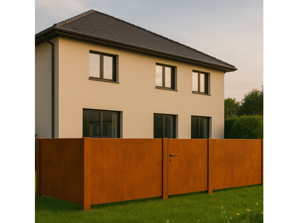 Model Sofi je poctivý, plný plot z cortenové oceli s naprosto čistým designem. Žádné ornamenty, žádné zbytečnosti – jen hladká, soudržná plocha, která působí moderně, klidně a přirozeně. Díky svému minimalistickému pojetí se skvěle hodí jak k architektonicky výrazným domům, tak k nenápadným zahradám, kde má hlavní slovo prostor a materiál.
