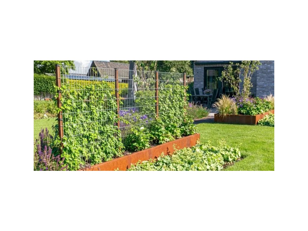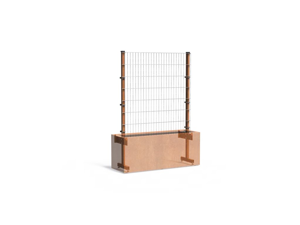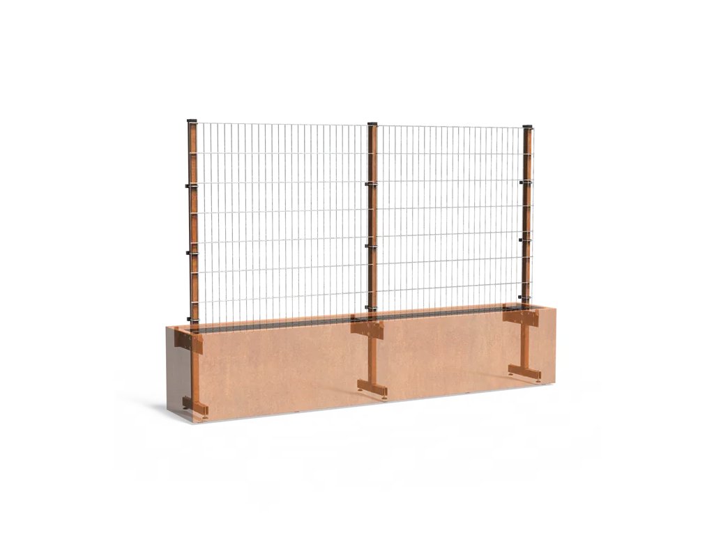 TRELLIS COR je ocelová mřížová konstrukce z cortenu určená jako opora pro popínavé rostliny a jako zelený předěl prostoru. Instaluje se přímo do kompatibilních květináčů CARREZ, kde je pevně zaklesnutý a tvoří s nimi jeden stabilní celek bez nutnosti dalších viditelných spojů.